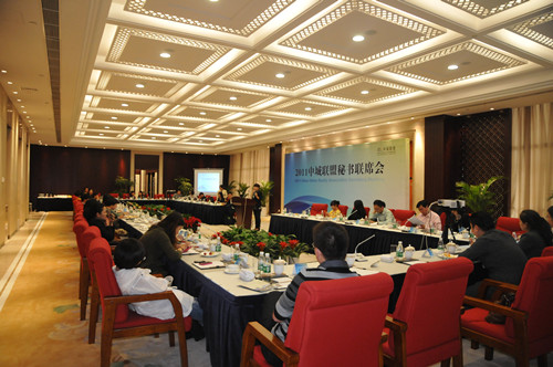 10月19-22日,2011年中城聯盟秘書聯席會在揚州召開,來自中城聯盟成員單位的近50名領導秘書參加活動,我公司和南京新城發(fā)展股份有限公司作為東道主共同承辦了本次活動。活動內容豐富多彩,中城聯盟秘書長戴大為主講了《聯盟聯合的力量》,參會人員進行了座談交流,開展了“我的老板——分享活動”,參觀考察了廣陵新城之中國聲谷、揚州小盤谷、玉器廠、工藝坊、瘦西湖、個園,并舉辦了中城聯盟秘書家宴。會議結束后,中城聯盟秘書處特地給陸金龍董事長發(fā)來感謝信,對我公司在承辦本次活動中從會議服務到參觀考察等各方面的精心安排表示感謝。