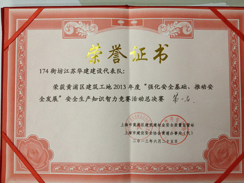 上海公司獲得黃浦區(qū)安全知識競賽第一名 時間:2013-06-26 3747 6月25日下午,上海公司外灘源項目部參加了由上海市黃浦區(qū)建設和交通委員會主辦的黃浦區(qū)建筑工地2013年度“強化安全基礎、推動安全發(fā)展”安全生產(chǎn)知識智力競賽并奪得第一名。 上海公司委派外灘源項目經(jīng)理王青輝為領隊,項目部劉相旭、王堃、王勇三人代表公司參賽。他們一路順利闖關,通過初賽進入決賽。在決賽中經(jīng)過激烈的角逐,從39支參賽隊伍中脫穎而出,榮獲第一名,王青輝同時獲得競賽優(yōu)秀組織者獎。 (楊秋林)