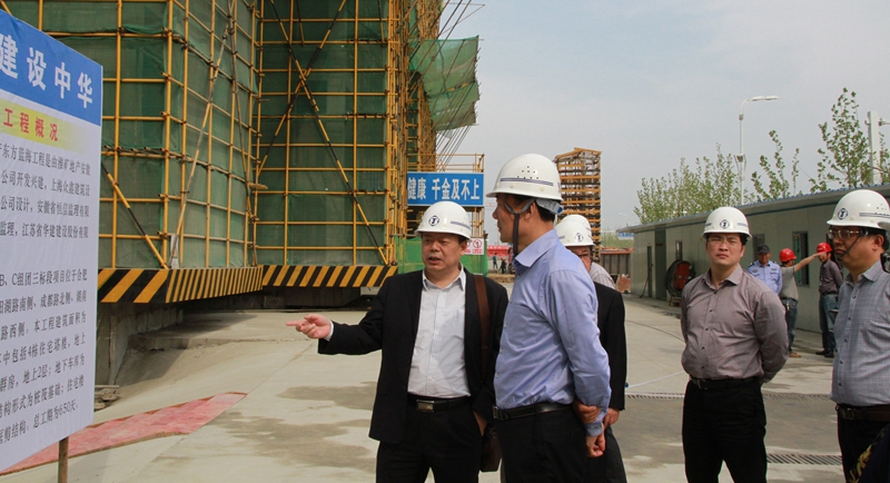 聞道才副市長赴安徽分公司視察東方藍海項目 時間:2014-04-11 3495 4月10日下午,揚州市副市長聞道才一行赴安徽分公司視察了合肥東方藍海B、C組團三標段項目。公司副總經理陸俊、副總經理、惠州公司總經理華恒榮陪同參加。 在項目現(xiàn)場華恒榮副總經理向來訪領導簡要介紹了江蘇華建在安徽市場的發(fā)展戰(zhàn)略及東方藍海B、C組團三標段項目的施工情況。聞市長對施工現(xiàn)場、施工組織非常滿意,并再三強調要抓好安全工作,爭創(chuàng)優(yōu)質工程,為揚州建筑業(yè)在安徽市場的發(fā)展做出積極貢獻。
