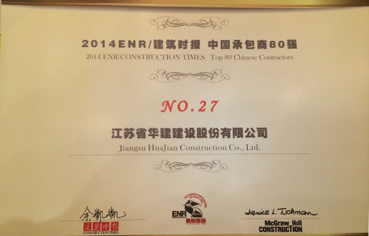 公司入選中國(guó)承包商80強(qiáng) 時(shí)間:2014-11-21 4003 11月21日,由美國(guó)《工程新聞?dòng)涗洝?/SPAN>(ENR)雜志與中國(guó)《建筑時(shí)報(bào)》合作舉辦的中國(guó)承包商80強(qiáng)和工程設(shè)計(jì)企業(yè)60強(qiáng)評(píng)比活動(dòng)揭開(kāi)榜單。公司成功入選中國(guó)承包商80強(qiáng)榜單第27位,比上年上升7位。