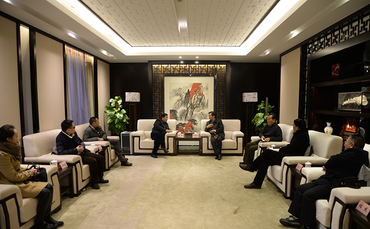 12月17日,重慶地產集團總經理蒙毅攜集團直屬全資子公司重慶中振土地綜合治理公司總經理熊北平一行專程來公司考察洽談合作事宜。公司董事長陸金龍、監事會主席吳士茂、董事曹德榮、董事、常務副總程杰、總會李長棟等出席接待。