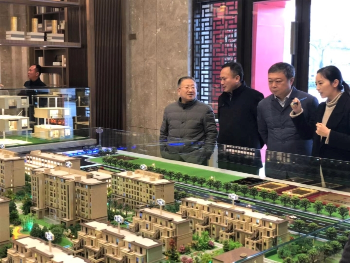 王宏董事長首先考察了華建乾院項(xiàng)目,在售樓處聽取了項(xiàng)目開發(fā)、銷售的進(jìn)度報(bào)告,詳細(xì)了解了小區(qū)戶型特點(diǎn)和配套情況,并針對一些產(chǎn)品細(xì)節(jié)提出完善意見。