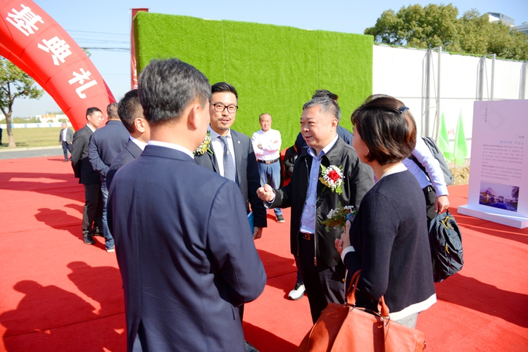 王宏董事長應邀出席中歐校友(蘇州)總部大樓奠基典禮 時間:2018-10-29 4487 10月27日,中歐校友(蘇州)總部大廈奠基典禮在蘇州工業(yè)園區(qū)隆重舉行,江蘇華建董事長王宏應邀出席。奠基儀式開始前,王宏董事長與中歐校友總會會長、中城聯(lián)盟輪值主席、朗詩集團董事局主席田明親切交談。王董事長對江蘇華建被選為總包單位參與大廈建設表示很榮幸,表態(tài)將以“魯班獎”標準抓好項目施工,努力打造成精品工程、標志工程、形象工程,為中歐校友會的發(fā)展盡心、盡力。田會長感謝江蘇華建對大廈建設的大力支持,希冀雙方的合作更加廣泛、更加深入。江蘇華建副總經理、上海區(qū)域公司總經理楊杰一同出席。