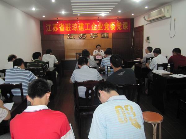 914日,江蘇駐瓊建工企業(yè)黨委邀請(qǐng)海南省直機(jī)關(guān)工委組織部長(zhǎng)謝衛(wèi)國(guó)給江蘇華建海南分公司黨員、預(yù)備黨員、入黨積極分子等30余人上了一堂題為《在新形勢(shì)下加強(qiáng)黨組織建設(shè)》的專題黨課,謝部長(zhǎng)從認(rèn)清形勢(shì)、明確任務(wù)、切實(shí)增強(qiáng)責(zé)任意識(shí),統(tǒng)籌兼顧、黨政結(jié)合、正確處理好黨政關(guān)系,嚴(yán)格要求、率先垂范、充分發(fā)揮表率作用,圍繞中心、創(chuàng)新載體、不斷激發(fā)工作活力等四個(gè)方面作了輔導(dǎo)。通過(guò)此次黨課教育,大家深受啟發(fā),心靈得到了一次洗禮和升華,決心腳踏實(shí)地,做好本職工作,盡心盡責(zé),以實(shí)際行動(dòng)迎接黨的十八大順利召開(kāi)。江蘇駐瓊建工企業(yè)黨委書(shū)記王宏出席并主持了黨課。