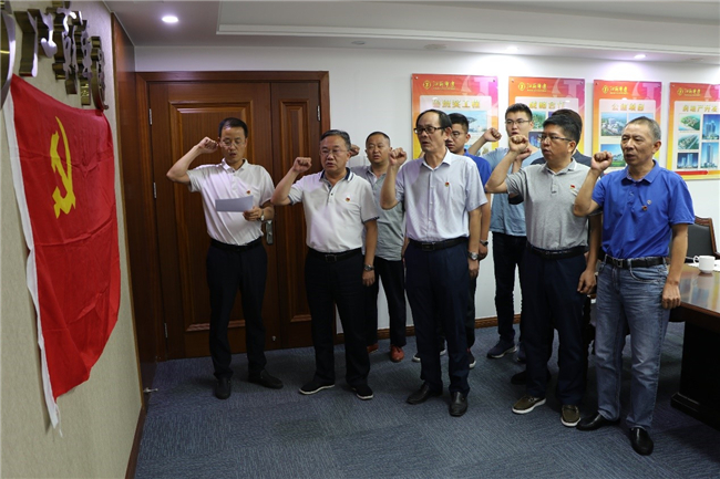 最后,全體黨員面對鮮紅黨旗舉行了莊嚴(yán)神圣的重溫入黨誓詞活動。