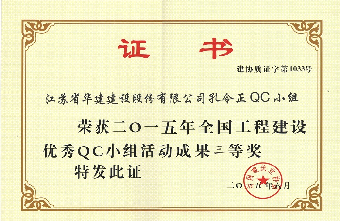 6月23—25日,由中國建筑業(yè)協(xié)會(huì)舉辦的“2015年全國工程建設(shè)優(yōu)秀QC小組活動(dòng)成果交流會(huì)”在云南昆明舉行。珠海區(qū)域公司“江蘇省華建建設(shè)股份有限公司孔令正QC小組” 經(jīng)江蘇省建筑行業(yè)協(xié)會(huì)推薦參加交流會(huì),其成果《剝蝕丘陵地貌多形截面鋼筋混凝土灌注樁施工新方法》榮獲中建協(xié)QC成果三等獎(jiǎng)。中國建筑業(yè)協(xié)會(huì)QC成果獎(jiǎng)是建筑領(lǐng)域QC成果最高獎(jiǎng)項(xiàng),該獎(jiǎng)項(xiàng)的獲得是對公司在技術(shù)質(zhì)量管理工作方面的充分肯定。此外根據(jù)該項(xiàng)成果編寫的工法還獲得2014年度江蘇省省級工法。