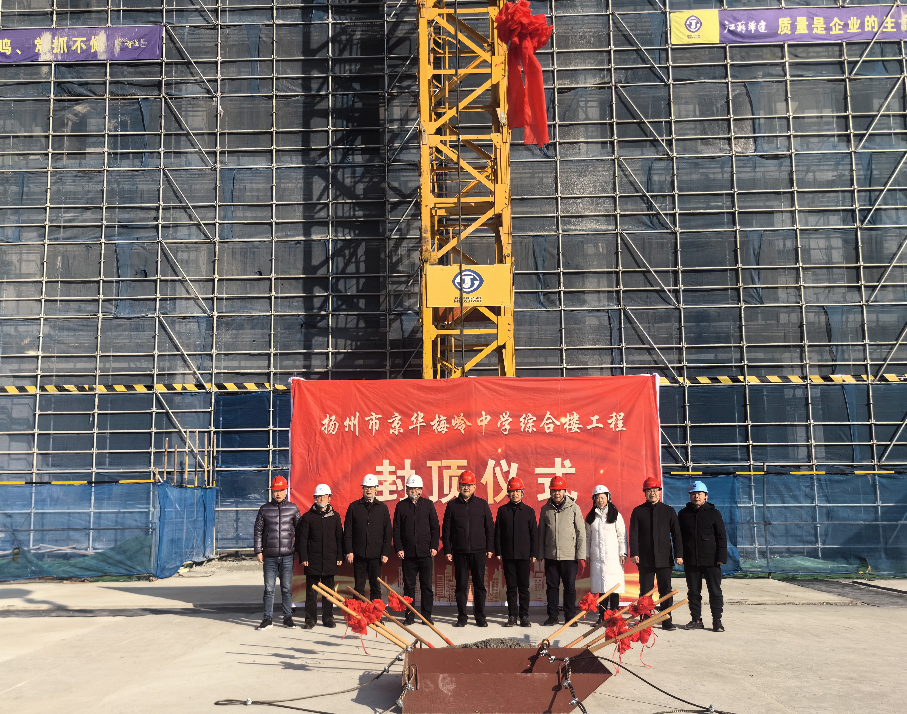 1月25日,由江蘇華建揚州分公司施工的京華梅嶺中學綜合樓項目,舉行了主體結構封頂儀式。市教...