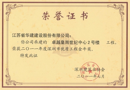 該工程先后被評為深圳市優質結構工程、深圳市優、“金牛獎”、 廣東省建筑業新技術應用示范工程、全國AAA級安全文明標準化誠信工地、江蘇省省優“揚子杯”和廣東省優良樣板工程。