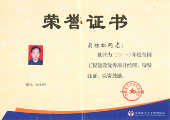富有成效的工作,一絲不茍的精神,贏得了多方的肯定和褒獎。2010年被評為廣東省優秀項目經理,2011年被評為全國項目經理。